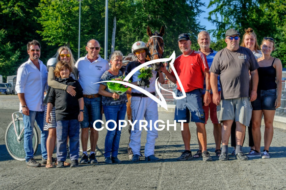 - Billede Beskrivelse: vinder 5 løb Aura med Kim Mortensen - Bornholms Brand Park 27 Juni 2018. Fotograf Torben Ager - Travfoto Bornholm.