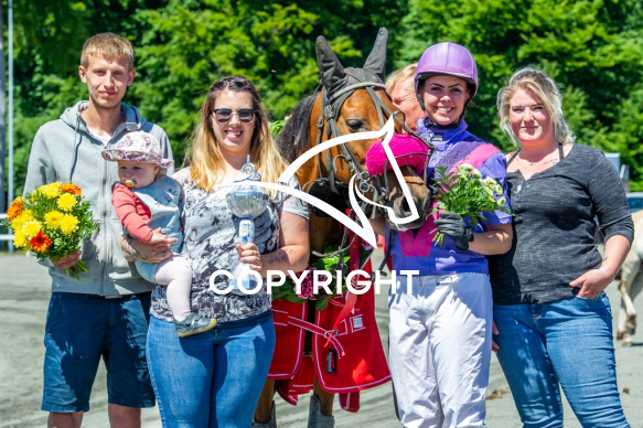 - Beskrivelse: vinder 6 løb Tazzmanien med Michelle K Høstrup - Bornholms Brand Park 30 Juni 2018 - DM ponymonté. Fotograf Torben Ager - Travfoto Bornholm.