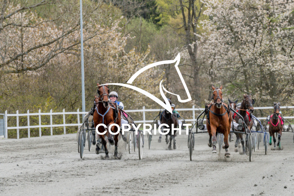- Billede Beskrivelse: Ferdi Dravet med Kim Dahl er stærkest i opløbet og vinder 6 løb Bornholms Brand Park 4 maj 2019 Fotograf Torben Ager - Travfoto Bornholm