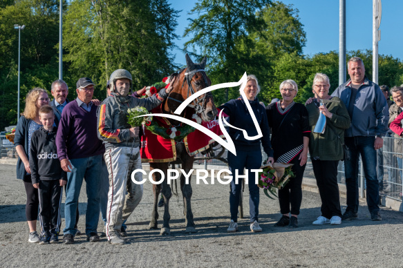 - Billede Beskrivelse: Cerosso med Stefan Lind Holm vinder Erlig Rügge Memorial Bornholms Brand Park 31 maj 2019 Fotograf Torben Ager - Travfoto Bornholm