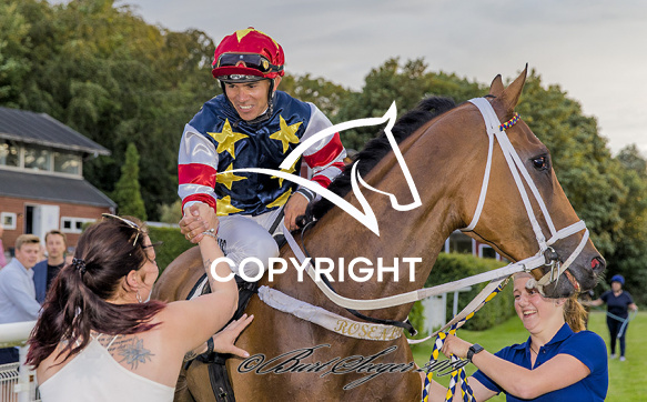 - Billede Beskrivelse: ARISTOTELES med Marcos Robaldo 8. løbs vinder på Klampenborg d. 2019-07-27. Photo: Burt Seeger.