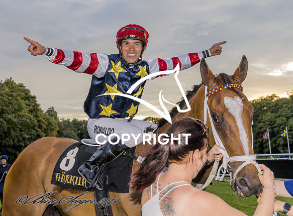 - Billede Beskrivelse: ARISTOTELES med Marcos Robaldo 8. løbs vinder på Klampenborg d. 2019-07-27. Photo: Burt Seeger.