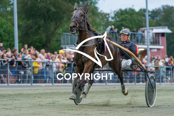 - Billede Beskrivelse: Global Tinghøj med Stefan Lind holm vinder 8 løb Bornholms Brand Park 30 juli 2019 Fotograf Torben Ager - Travfoto Bornholm