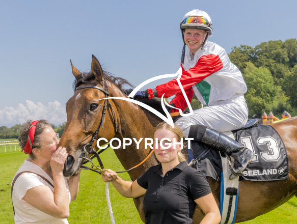 - Billede Beskrivelse: MELISSA JORDAN med Annie Nilsson-Lindahl 2. løbs vinder på Klampenborg d. 2019-08-10. Photo: Burt Seeger.