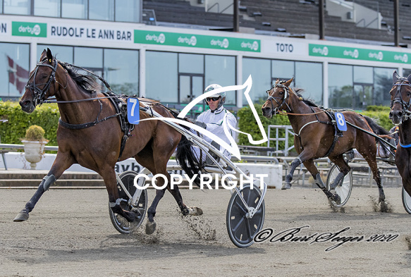 - Billede Beskrivelse: BELLADORE med Flemming Jensen 2. løbs vinder på Charlottenlund d. 2020-05-29. Photo: Burt Seeger.
