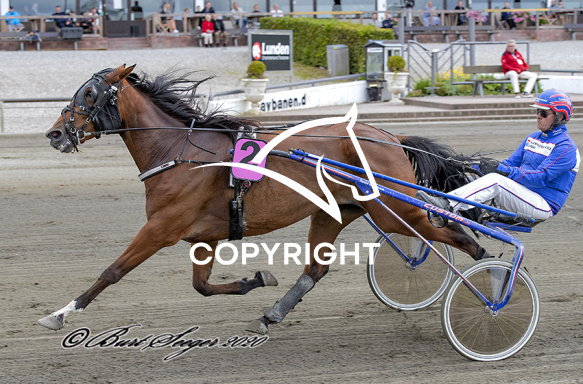 - Beskrivelse: CHAKITA T HALL med Kenneth Andersen 10. løbs vinder på Charlottenlund d. 2020.07.12. Photo: Burt Seeger.