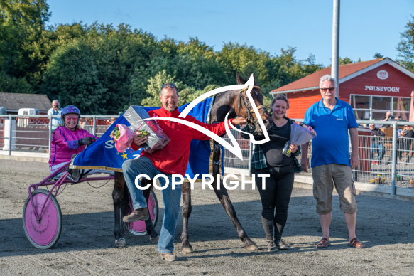 - Billede Beskrivelse: Sky Line med Betina Lund vinder 7 løb Bornholms Brand Park 21 juli 2020 Fotograf Torben Ager - Travfoto Bornholm