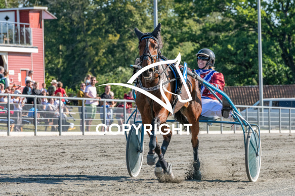 - Billede Beskrivelse: Yanni Knick med Susanne Munk vinder 2 løb Bornholms Brand Park 4 august 2020 Fotograf Torben Ager - Travfoto Bornholm