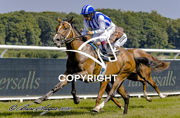 - Billede Beskrivelse: MASSETO med Carlos Lopex 1. løbs vinder på Klampenborg d. 2020-08-09. Photo: Burt Seeger.