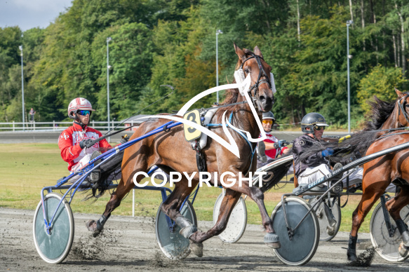- Beskrivelse: Emik K med Mads Petersen Bornholms Brand Park 23 august 2020 Fotograf Torben Ager - Travfoto Bornholm