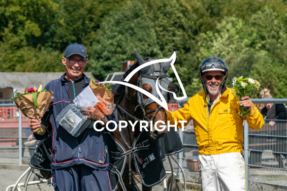 - Billede Beskrivelse: Delikates med Leif Nyboe vinder 5 løb Bornholms Brand Park 23 august 2020 Fotograf Torben Ager - Travfoto Bornholm