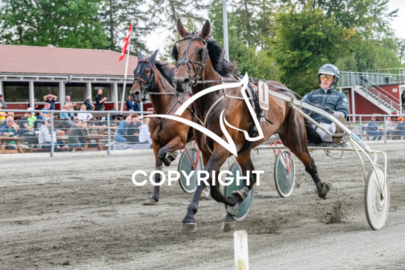 - Billede Beskrivelse: Emil baunely med Rene Kjær vinder 7 løb Bornholms Brand Park 23 august 2020 Fotograf Torben Ager - Travfoto Bornholm