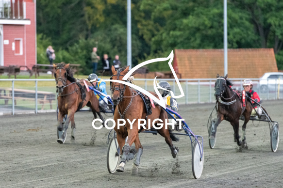 - Billede Beskrivelse: Bruce Shadow med Søren K Jensen vinder 3 løb Bornholms Brand Park 1 september 2020 Fotograf Torben Ager - Travfoto Bornholm