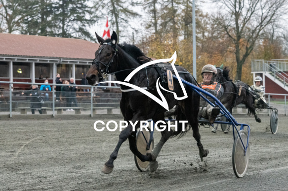 - Billede Beskrivelse: Elia med Ken Ecce vinder 7 løb Bornholms Brand Park 7 november 2020 Fotograf Torben Ager - Travfoto Bornholm