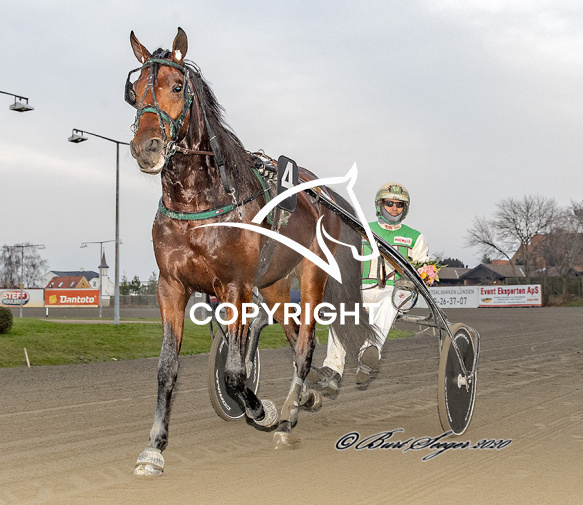 - Billede Beskrivelse: GARFIELD med Jeppe Juel 6. løbs vinder af I.C.Tvede Memorial 2020, på Charlottenlund d. 2020.12.06 Photo: Burt Seeger.