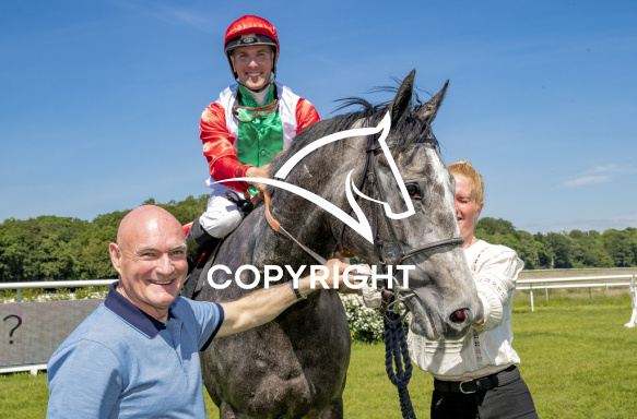 - Billede Beskrivelse: MALEKHA med Oliver Wilson 4. løbs vinder af DANSK BREEDERS CUP 2021, på Klampenborg d. 2021-06-05. Photo: Burt Seeger.