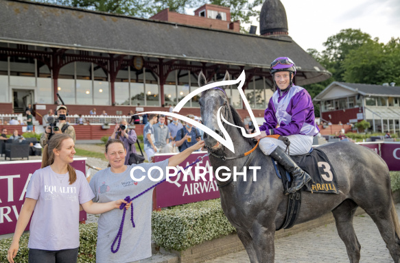 - Beskrivelse: GREY ZONE med Liam Doran 6. løbs vinder på Klampenborg d. 2021-06-11. Photo: Burt Seeger.