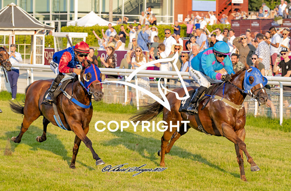- Billede Beskrivelse: NOM DE PLUME med Per-Anders Gråberg 8. løbs vinder SUPER SPRINT, på Klampenborg d. 2021-07-24. Photo: Burt Seeger.