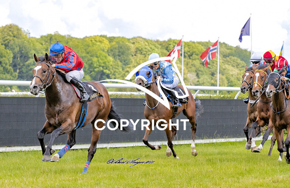 - Billede Beskrivelse: CHARMING KNIGHT med Oliver Wilson 2. løbs vinder på Klampenborg d. 2021-08-08. Photo: Burt Seeger.