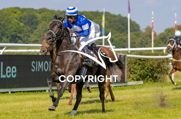 - Beskrivelse: SANDMANDARINE med Carlos Lopez 1. løbs vinder på Klampenborg d. 2021-07-24. Photo: Burt Seeger.
