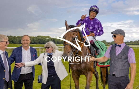 - Billede Beskrivelse: COULD BE KING med Carlos Lopez 4. løbs vinder på Klampenborg d. 2021-08-08. Photo: Burt Seeger.