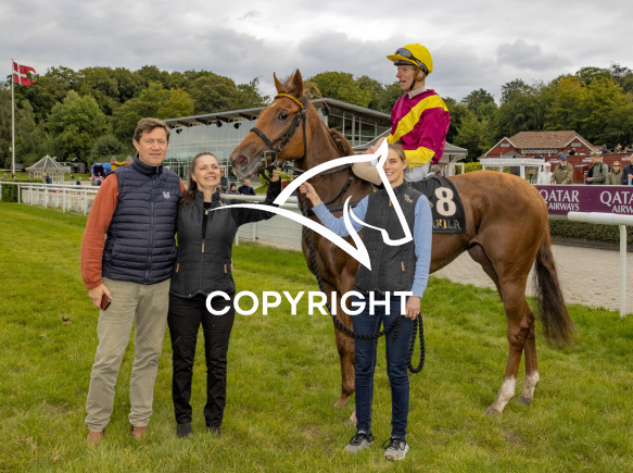 - Billede Beskrivelse: FLAMBEAU ROUGE med Jacob Johansen 9. løbs vinder på Klampenborg d. 2021-09-18. Photo: Burt Seeger.