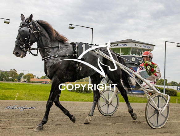- Billede Beskrivelse: SLIDE SO EASY med Knud Mønster 6. løbs vinder af Travligaen, liga 1 - Finale 2021, på Charlottenlund d. 2021.10.10. Photo: Burt Seeger.