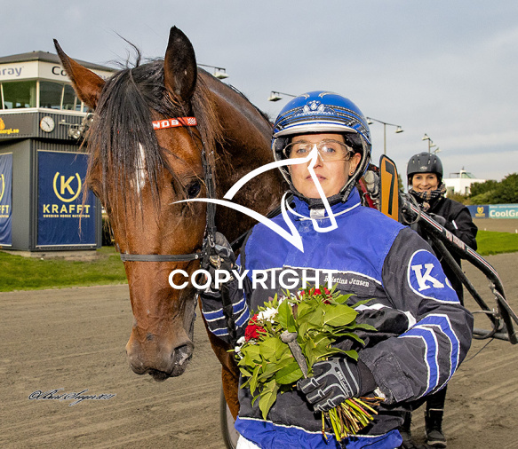 - Beskrivelse: ARN KRONOS med Kristina Jensen 11. løbs vinder på Charlottenlund d. 2021.10.10. Photo: Burt Seeger.