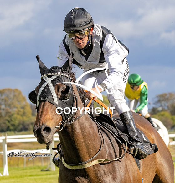 - Billede Beskrivelse: KENGÄT JALASSA med Marcos Robaldo 1. løbs vinder på Klampenborg d. 2021-10-16. Photo: Burt Seeger.