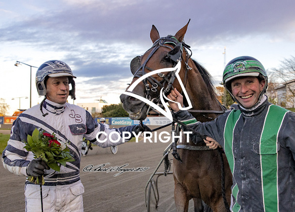 - Billede Beskrivelse: HENBIANCA BOKO med Jörgen Sjunnesson 4. løbs vinder på Charlottenlund d. 2021.11.21. Photo: Burt Seeger.