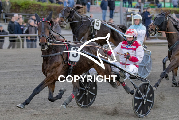 - Billede Beskrivelse: GO ON GARDENIA med Knud Mønster 5. løbs vinder af Dansk Avlsløb 2021 - Finale for hopper, på Charlottenlund d. 2021.11.21. Photo: Burt Seeger.