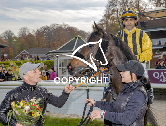 - Billede Beskrivelse: STRAKOWSKY med Martin Rodriguez 2. løbs vinder på Klampenborg d. 2021-10-30. Photo: Burt Seeger.