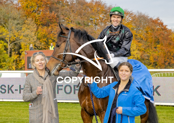 - Beskrivelse: NEVER PASS ME med Oliver Wilson 1. løbs vinder på Klampenborg d. 2021-10-30. Photo: Burt Seeger.
