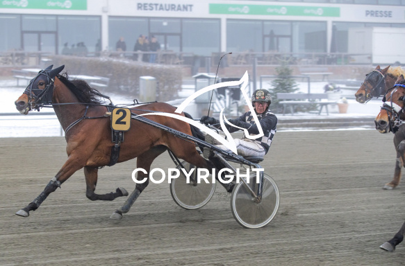 - Billede Beskrivelse: DOLLAR DREAM med Axel Jacobsen 7. løbs vinder på Charlottenlund d. 2021.12.26. Photo: Burt Seeger.