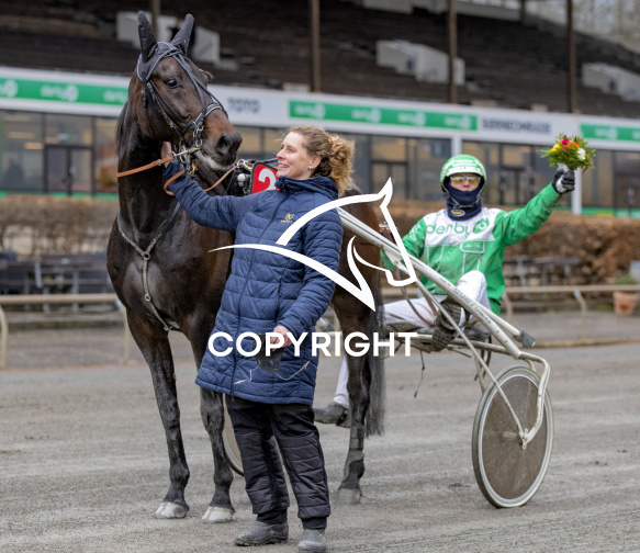 - Billede Beskrivelse: CHAP A P med Rene Kjær 3. løbs vinder på Charlottenlund d. 2022.02.06.. Photo: Burt Seeger.