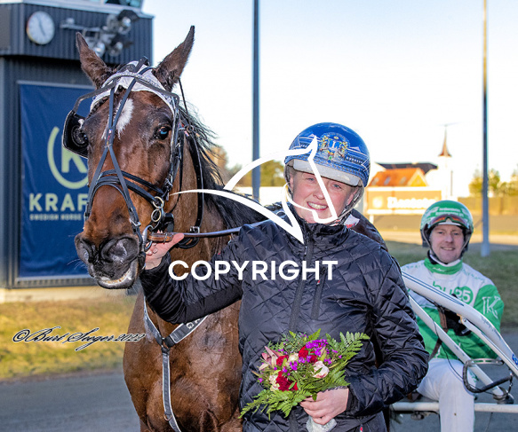 - Billede Beskrivelse: ZINZAN CASH med Rene Kjær 4. løbs vinder på Charlottenlund d. 2022.03.04.. Photo: Burt Seeger.