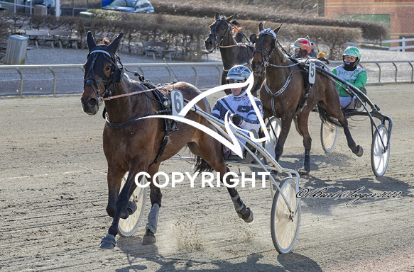- Billede Beskrivelse: JOCELYN B R med Jörgen Sjunnesson 5. løbs vinder på Charlottenlund d. 2022.04.08.. Photo: Burt Seeger.