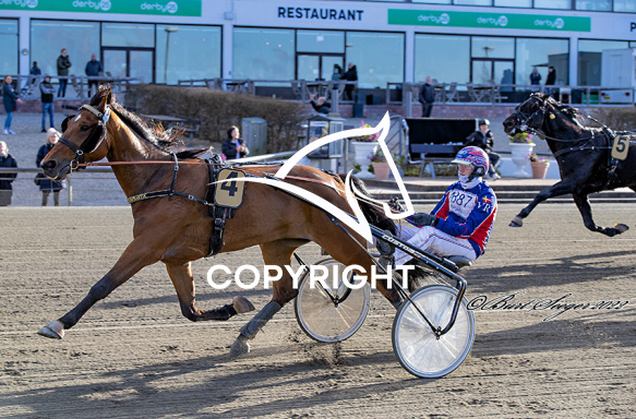 - Billede Beskrivelse: MYSTERIOUS LUCIFER med Victor Rosleff 7. løbs vinder på Charlottenlund d. 2022.04.08.. Photo: Burt Seeger.