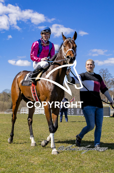 - Billede Beskrivelse: SIR CHAPLIN med Oliver Wilson 2. løbs vinder, her sammen med træner Lea Olsen, på Klampenborg d. 2022-04-16. Photo: Burt Seeger.