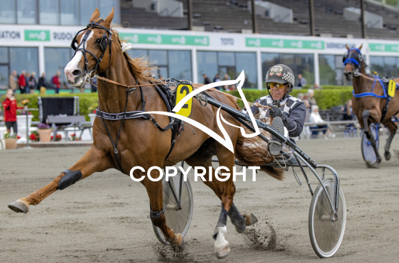 - Billede Beskrivelse: AMERICA DREAM med Axel Jacobsen 1. løbs vinder på Charlottenlund d. 2022.05-10. Photo: Burt Seeger.