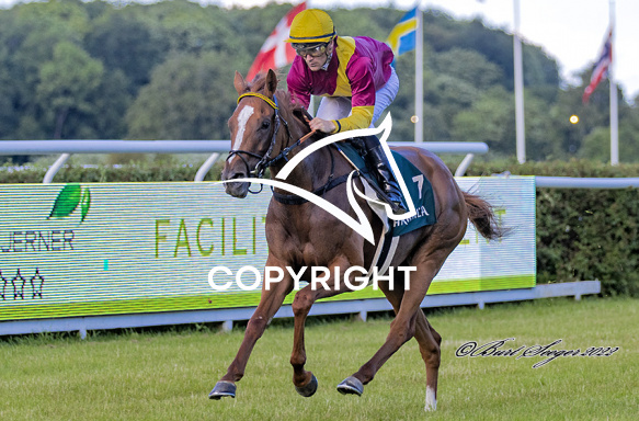 - Billede Beskrivelse: ILE DE CIRCE med Oliver Wilson 2. løbs vinder på Klampenborg d. 2022-07-02. Photo: Burt Seeger.