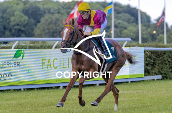 - Billede Beskrivelse: ILE DE CIRCE med Oliver Wilson 2. løbs vinder på Klampenborg d. 2022-07-02. Photo: Burt Seeger.