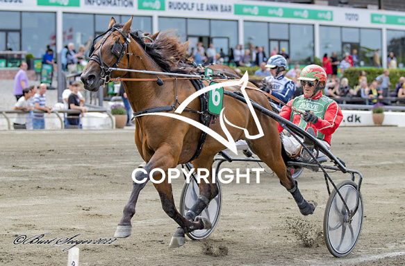 - Beskrivelse: STARO OBRIGADO med Steen Juul 4. løbs vinder på Charlottenlund d. 2022.07-24. Photo: Burt Seeger.