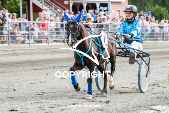 - Beskrivelse: Østruplunds Jason med Mathea Jönsson Bornholms Brand Park 21 august 2022 Fotograf Torben Ager - Travfoto Bornholm