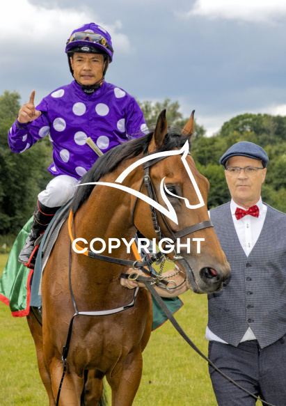 - Beskrivelse: COULD BE KING med Carlos Lopez 3. løbs vinder af ZAWAWI SPRINT CUP-2022, på Klampenborg d. 2022-08-07. Photo: Burt Seeger.