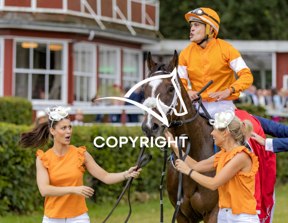 - Beskrivelse: TITANNIA med Andreas Tapia Dalbark 9. løbs vinder af THE MACALLAN DANSK DERBY-2022, på Klampenborg d. 2022-08-07. Photo: Burt Seeger.