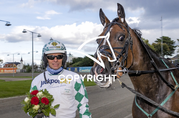 - Billede Beskrivelse: DELICIOUSSTONE med Flemming Jensen 6. løbs vinder på Charlottenlund d. 2022.10-09. Photo: Burt Seeger.