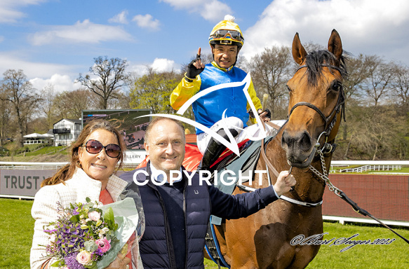 - Billede Beskrivelse: IRON BUTTERFLY med Carlos Lopez 4. løbs vinder af AL SHEMALI SCEPTRE STAKES 2023, på Klampenborg d. 2023-04-29. Photo: Burt Seeger.