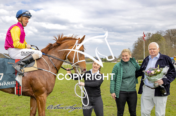 - Beskrivelse: KLARVAKEN med Jacob Johansen 5. løbs vinder på Klampenborg d. 2023-04-29. Photo: Burt Seeger.
