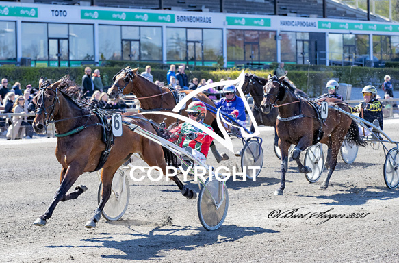 - Billede Beskrivelse: FRODO CASH med Steen Juul 5. løbs vinder på Charlottenlund d. 2023-05-07. Photo: Burt Seeger.